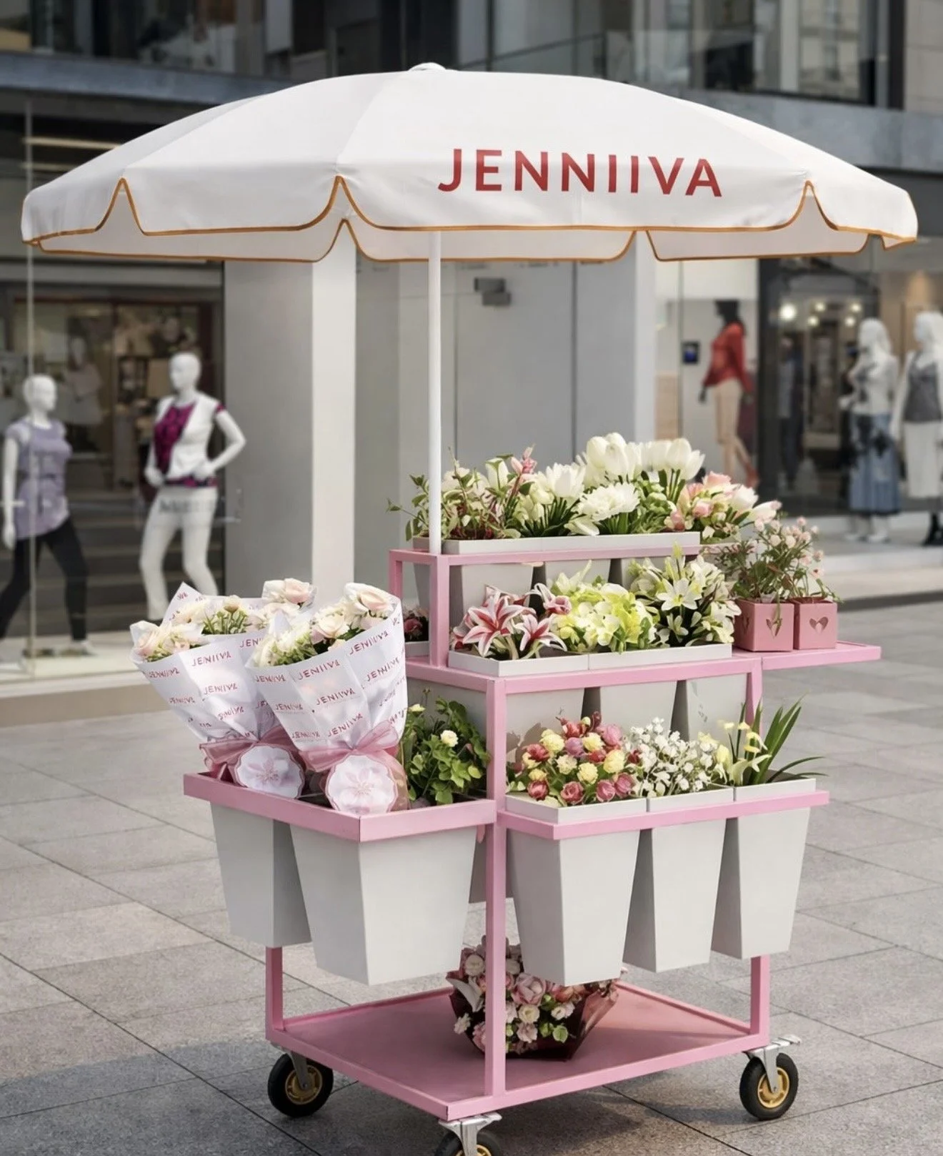 Select your flowers, create your bouquet, and have it wrapped in a custom Jenniiva wrap. A moment of love and a soft start to a busy fashion day.