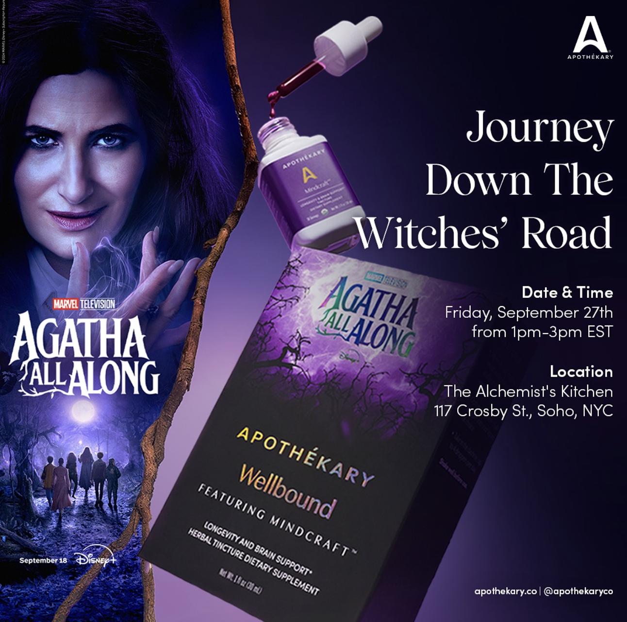 You’re Invited: Journey Down The Witches’ Road 🔮✨ Join The Alchemist’s Kitchen to celebrate its latest launch, The Wellbound Box featuring Mindcraft™, in collaboration with Marvel Television’s “Agatha All Along”.