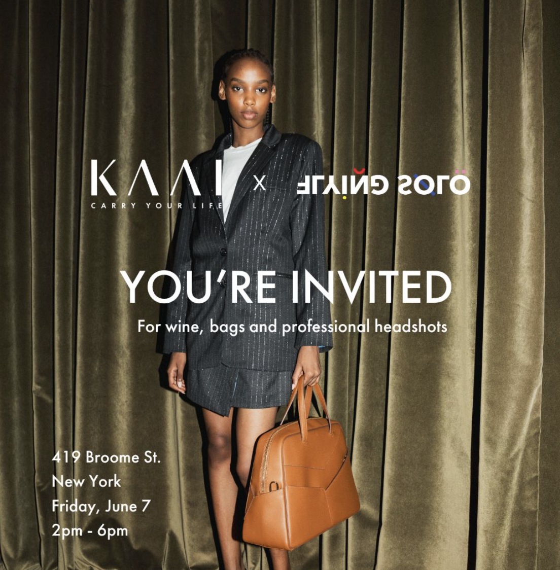 Stop by and get a new profile picture taken for free by a professional photographer at KAII Bag’s display at Flying Solo NYC . Enjoy some wine and snacks while you explore the collection.