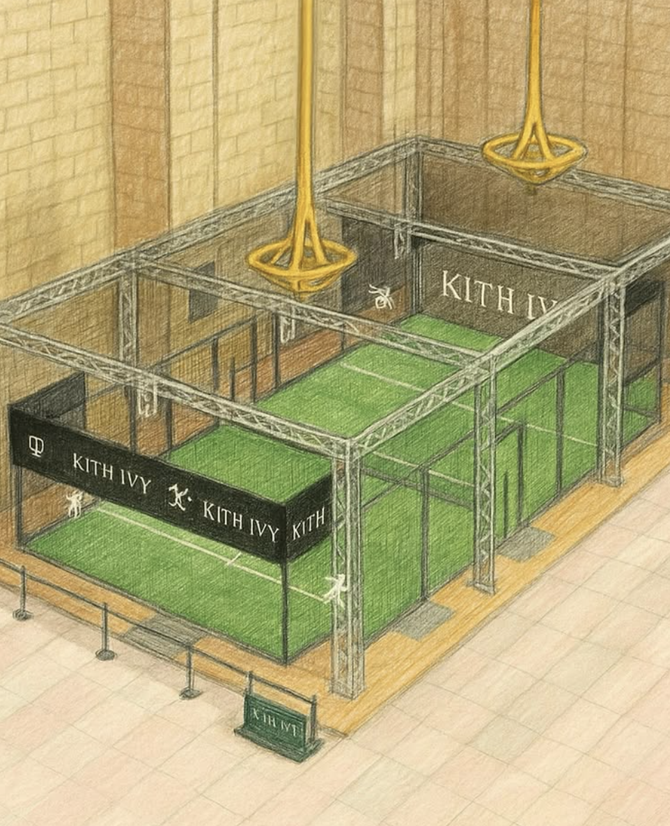To celebrate its upcoming launch, they have built a padel court inside Vanderbilt Hall at Grand Central Terminal where guests can book 60-minute slots to play and gain early access to the first Kith Ivy collection. The Kith Ivy Padel Court at Grand Central will be open from September 2 to 10.