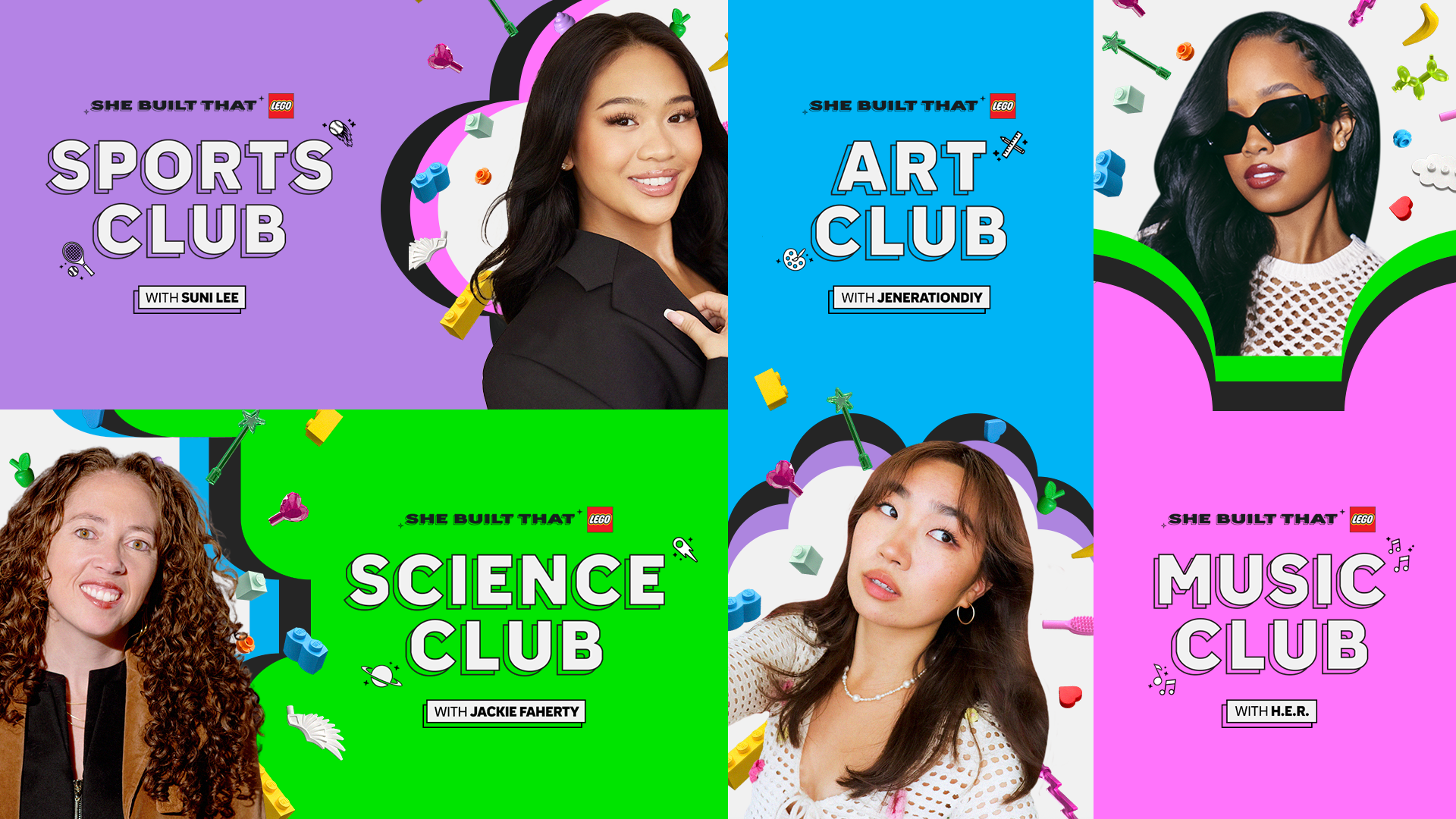 SHE BUILT THAT MUSIC CLUB: Join H.E.R. in this vibrant club for young creators who march to their own beat! Discover how rhythm and creativity can help you find your voice, then unleash your imagination by designing your own album cover with LEGO bricks in a fun music-inspired storytelling activity.