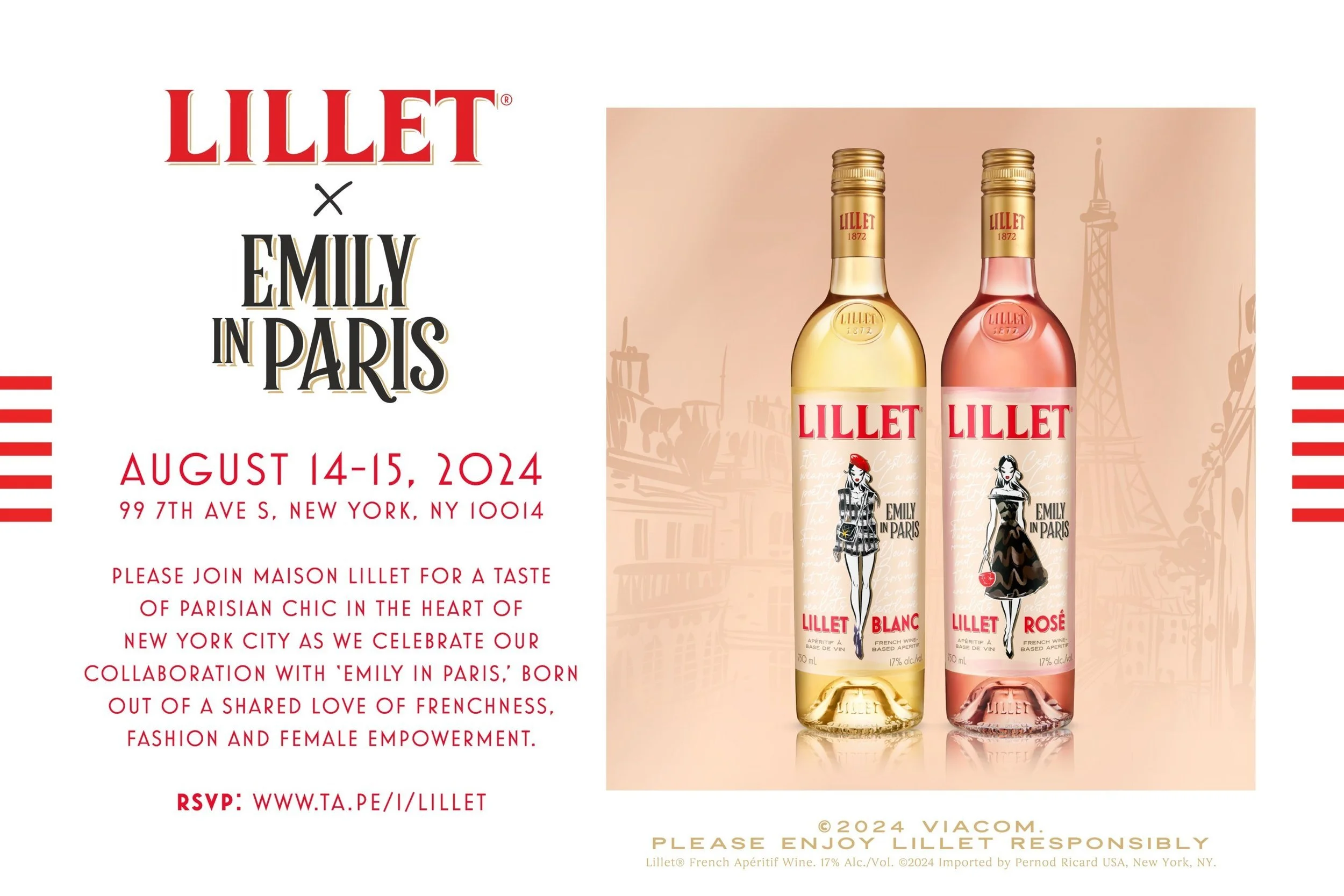 Lillet, the iconic French apéritif, and the hit series Emily in Paris have come together to create limited edition bottles of Lillet Blanc & Rose. Lillet invites fans to embark on a complimentary Parisian experience in the heart of NYC with “Café de Lillet,” a French bistro pop-up where guests can step into the enchanting world of Emily in Paris.