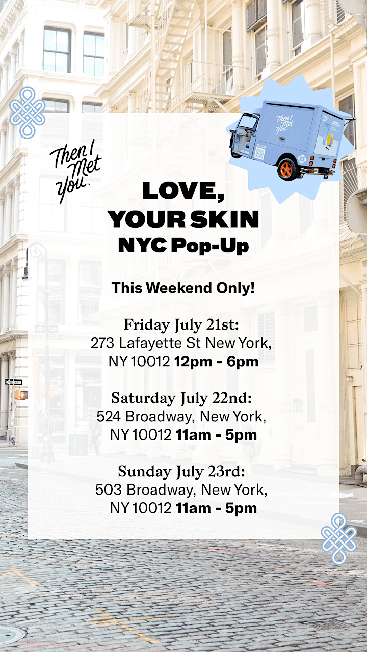 How will you LOVE, YOUR SKIN this summer? Then I Met You will be hitting the streets July 21st - 23rd to share with you the two essential ways you can LOVE, YOUR SKIN.
