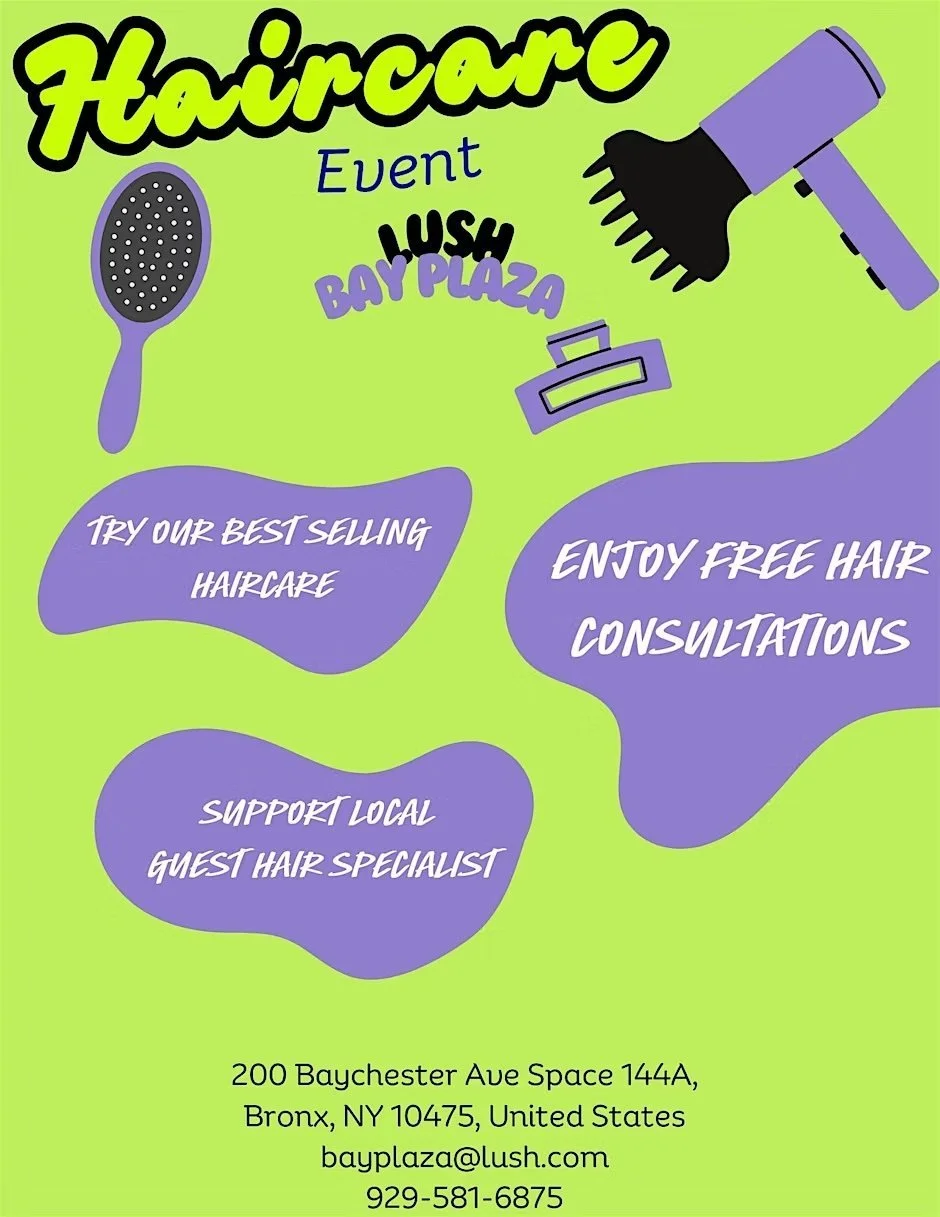 Join us for an exclusive haircare event at Lush Cosmetics Bay Plaza! Whether you're looking to enhance your natural texture, learn personalized haircare tips, or simply treat yourself to some self-care, this event has something special for you.