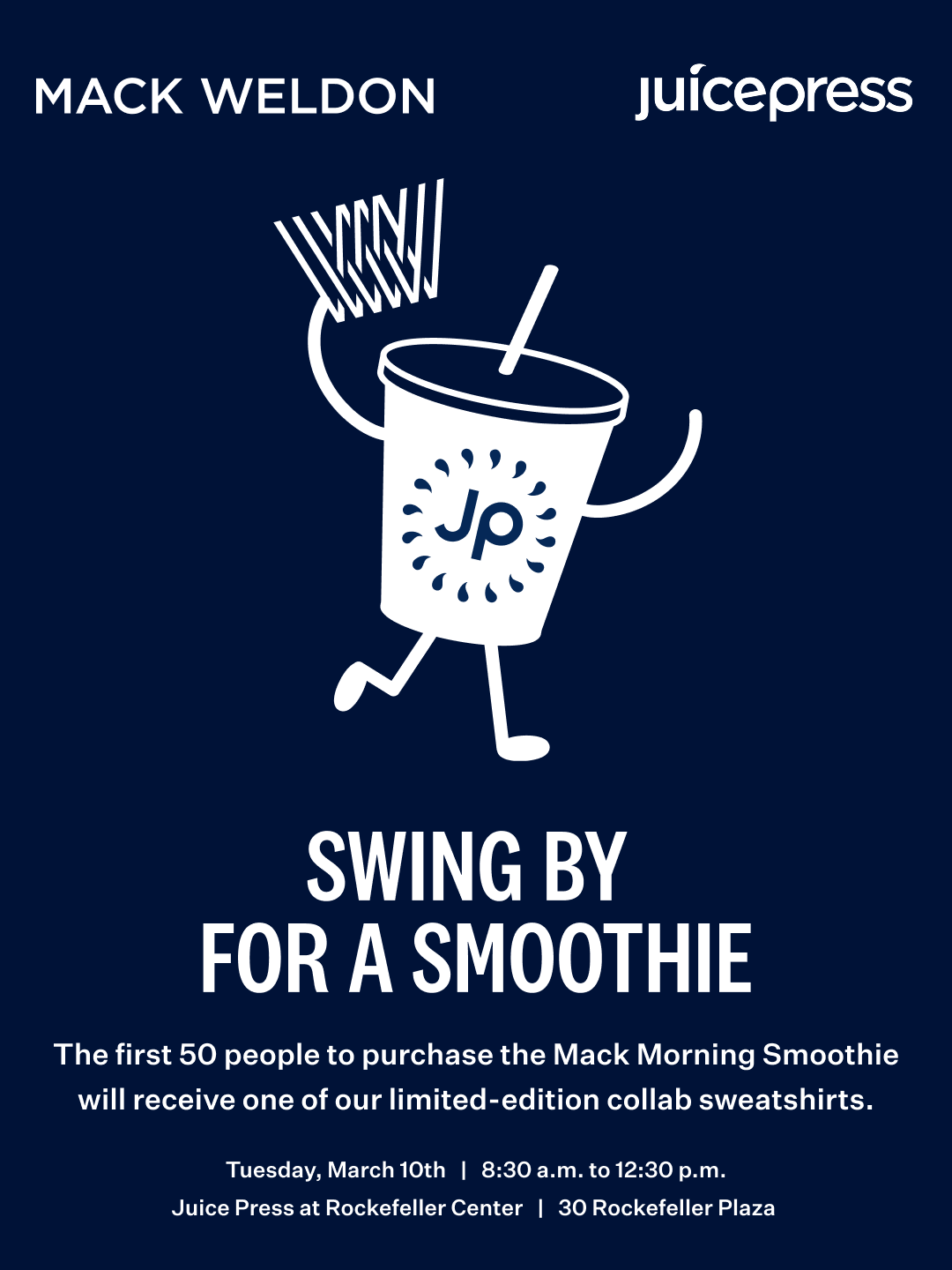 Come join Mack Weldon at Juice Press for a vitalizing Mack Morning Smoothie.
