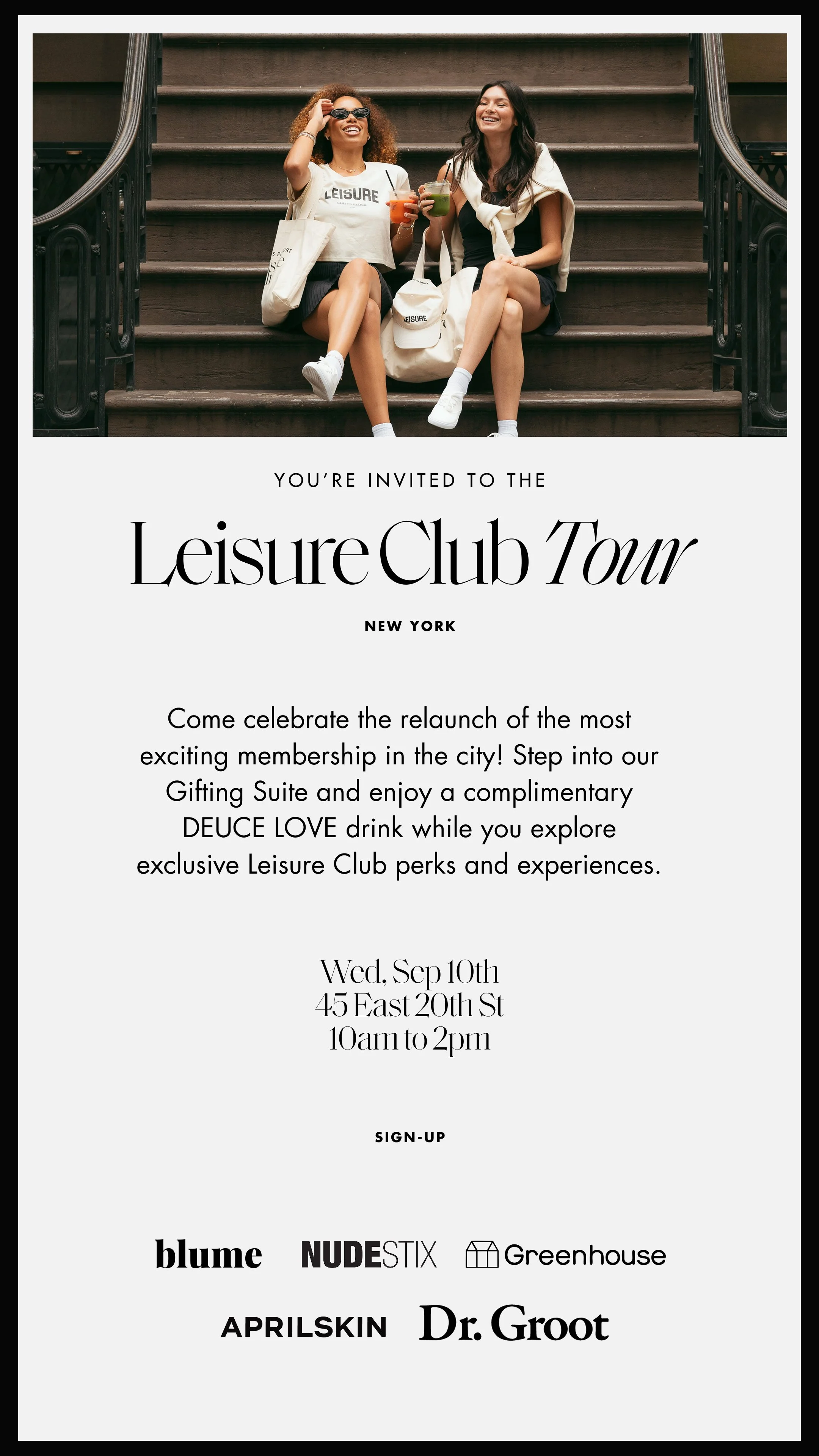 Majesty’s Pleasure invites you to step into The Leisure Club Tour — a two-city open house event celebrating the launch of the reimagined Majesty’s Pleasure Leisure Club Membership and planned with key brand partners Dr. Groot, APRILSKIN, NUDESTIX, Kristen EssHair, Blume and Greenhouse.