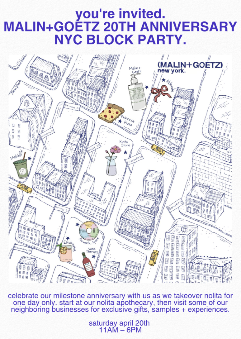 Celebrate 20 years with MALIN+GOETZ! For one day only, MALIN+GOETZ is taking over Nolita