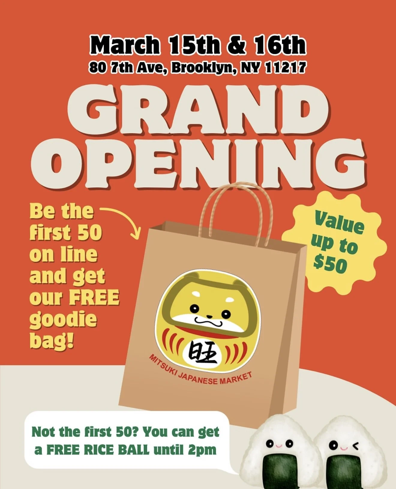 Mitsuki Japanese Market is officially opening at 80 7th Ave in Brooklyn and theyβre kicking things off with a Grand Opening Event on 3/15-3/16! π