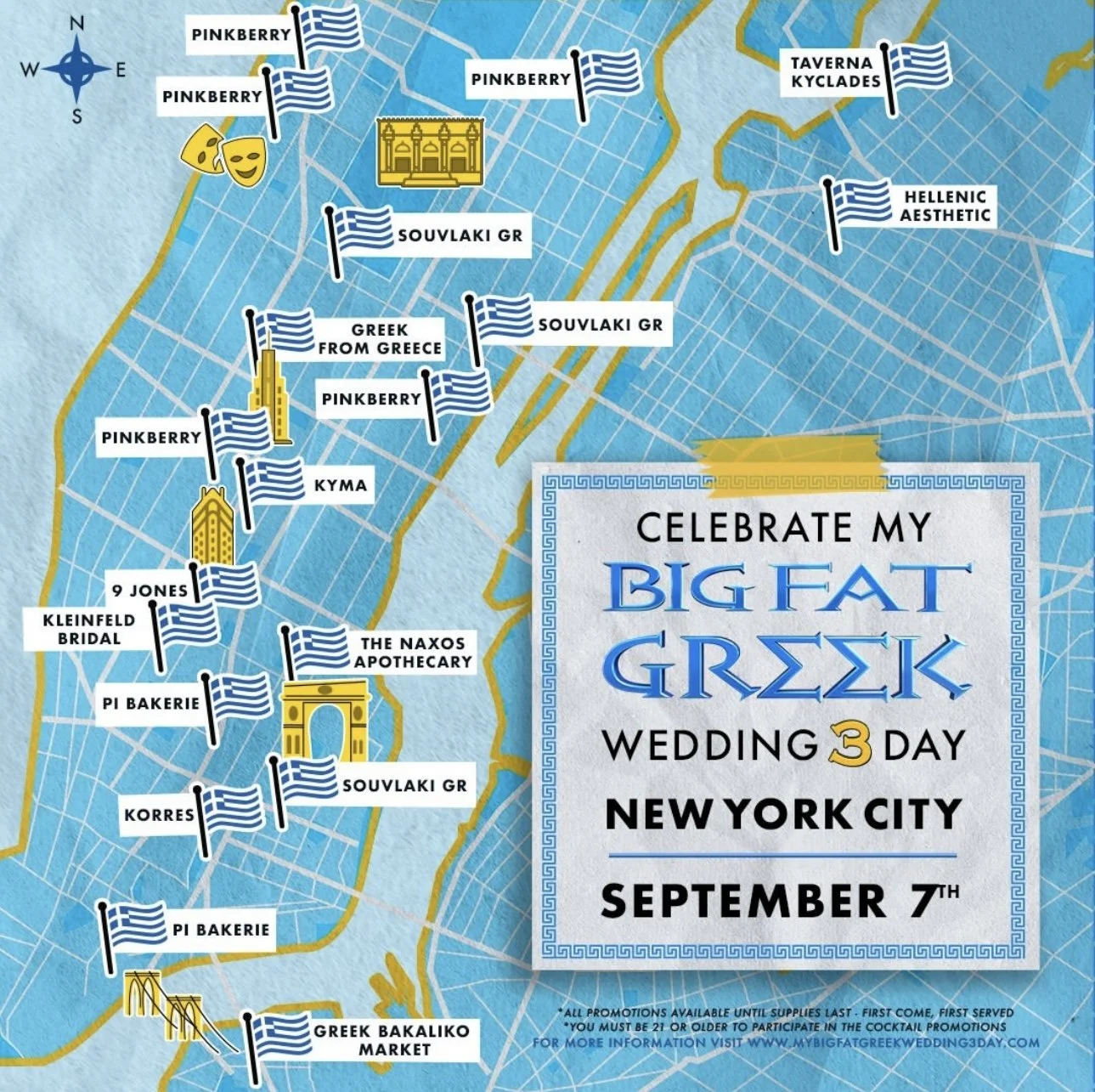 Celebrate My Big Fat Greek Wedding 3 at your favorite NYC spots for festive treats, drinks and much more!