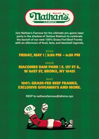 Join them for a home-run-worthy lawn party in the shadow of Yankee Stadium on Friday, May 1, featuring first bites, photo moments, and giveaways.