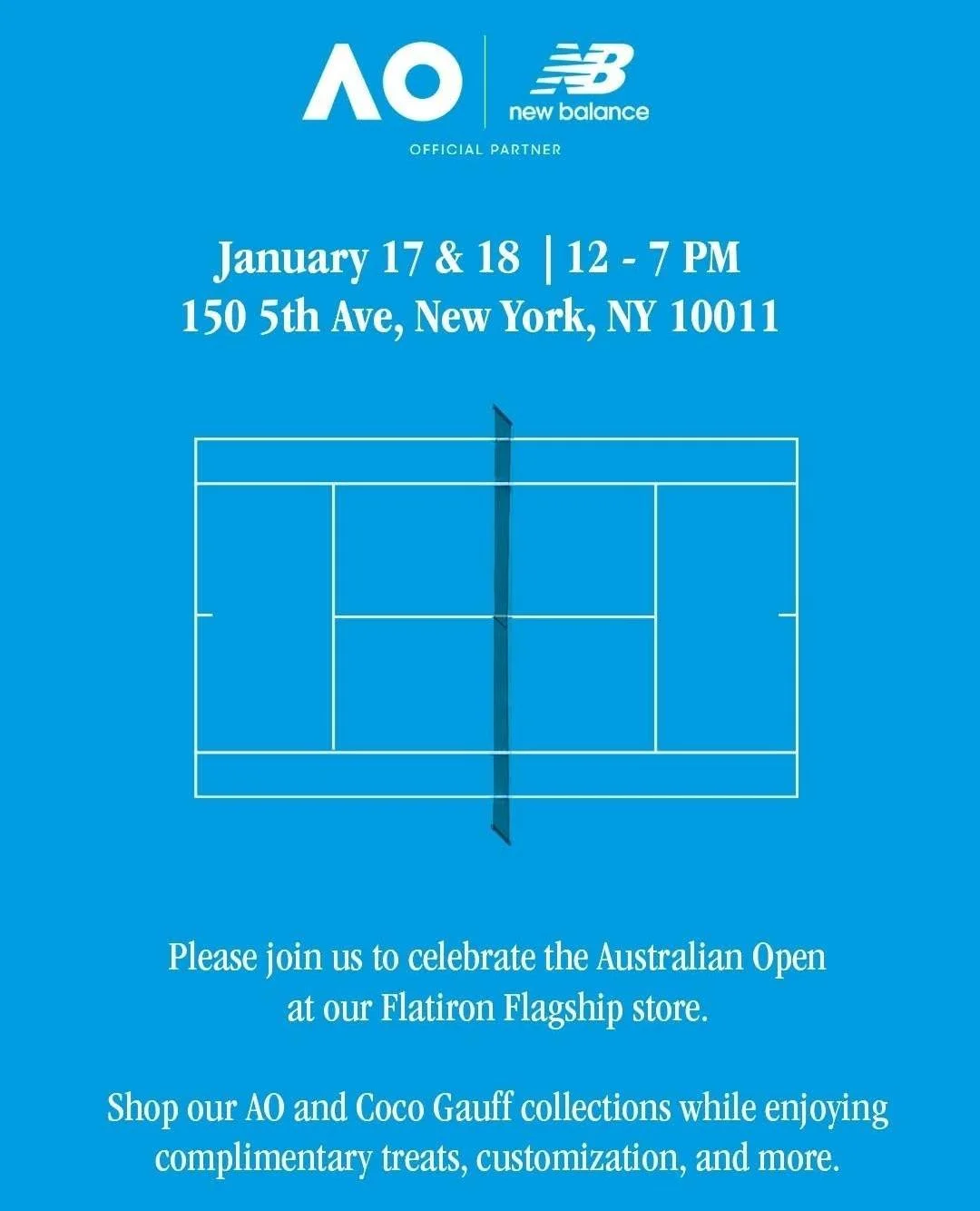 Join New Balance this weekend to celebrate the Australian Open at its Flatiron Flagship store!