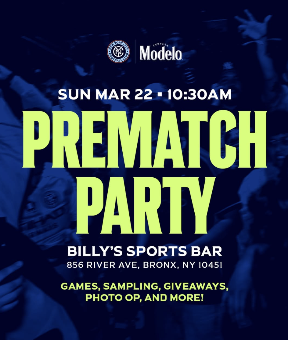 Join NYCFC for a Pre-Match Party with games, sampling, giveaways, photo ops and more!