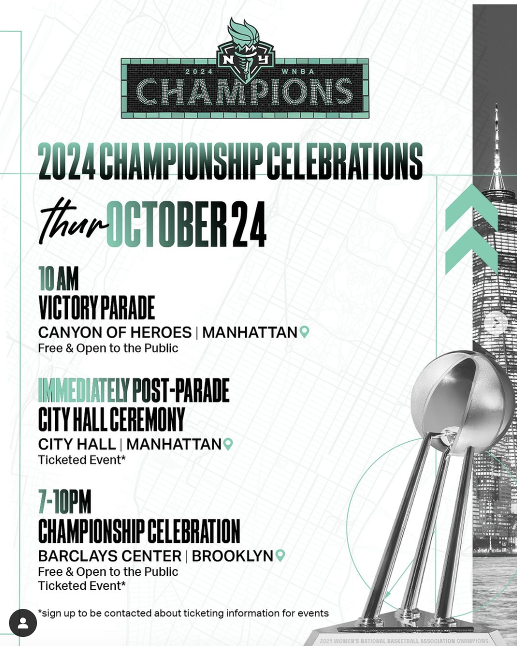 Thursday NY Liberty is going ALL the way up for our Championship Celebrations! π
