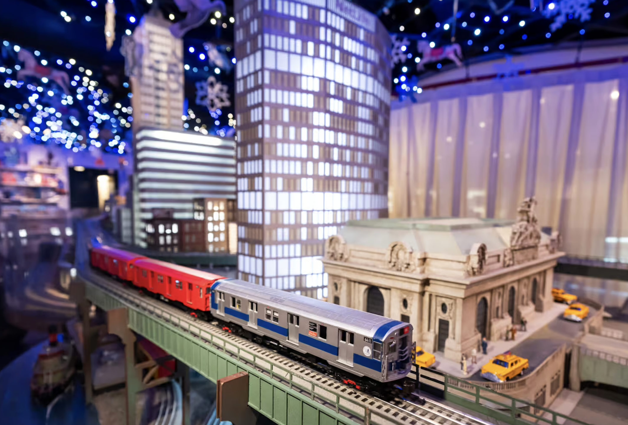 This holiday season, the New York Transit Museum’s Grand Central Gallery & Store plays host to a city within a city with the display of a miniature electric railroad running over, through, and beneath some of New York’s most magnificent landmarks.