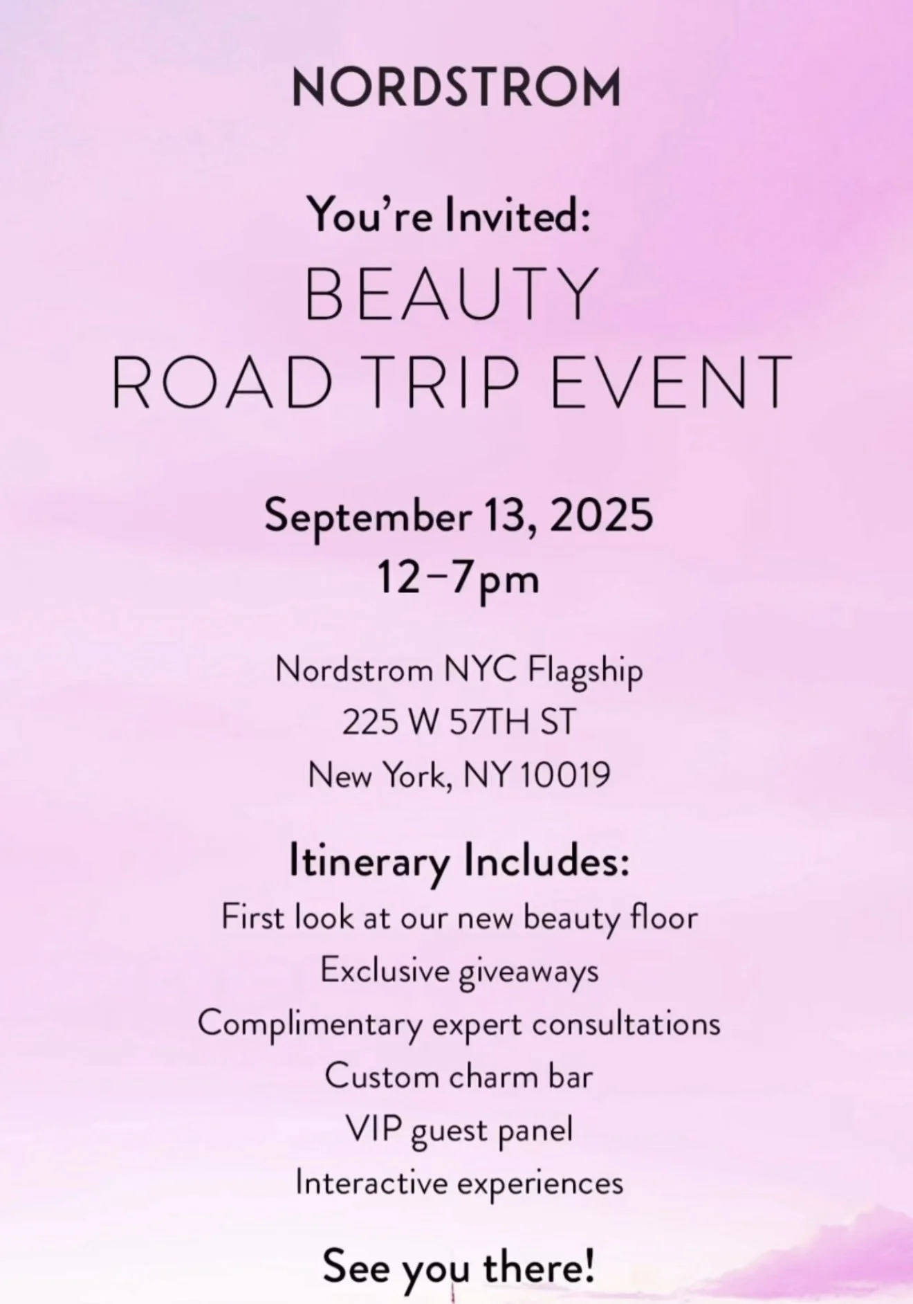 Your beauty journey begins at Nordstrom. Join on a cross-county beauty adventure on September 13th. Nordstrom is transforming a NYC flagship into a guided beauty journey featuring destinations that celebrate diverse beauty styles from coast to coast.