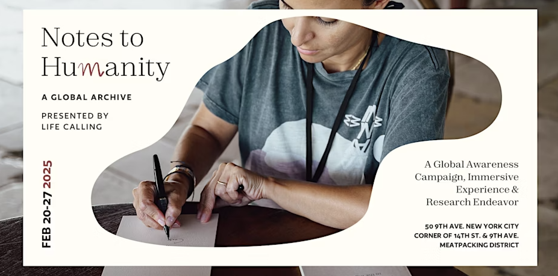 In February 2025, New York City’s historic Meatpacking District will host the debut of Notes to Humanity, a transformative two-year global campaign launched by Life Calling. The experience aims to create a living archive of humanity’s commitment to staying connected in an increasingly digital world. Throughout its tenure, Notes to Humanity will come to life in diverse and creative ways—immersive exhibitions, bespoke experiences, and collaborative partnerships designed to engage leaders across fields and inspire the broader public.