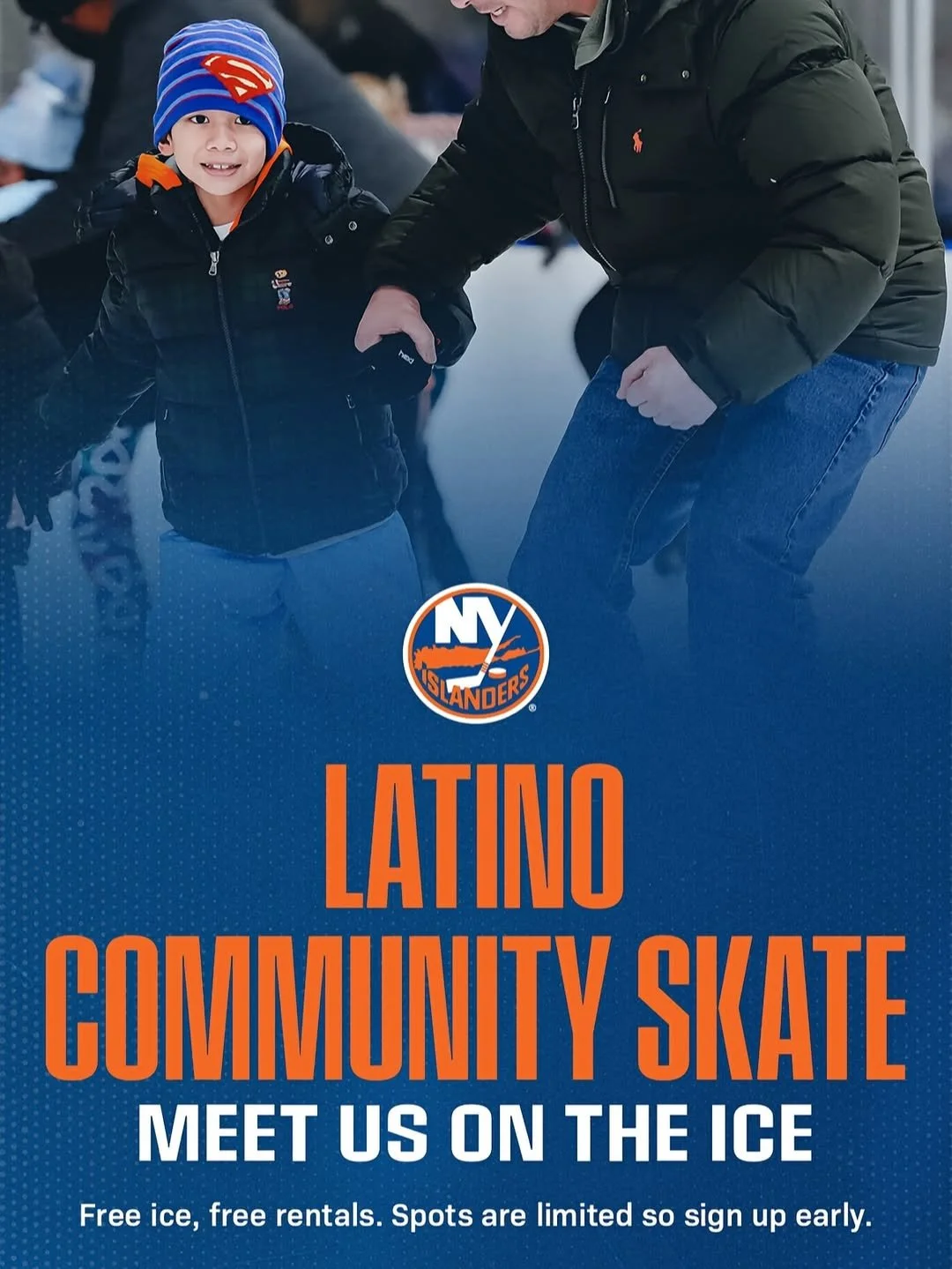 The NY Islanders are hosting a Latino Community Skate Day in QUEENS FOR Latino Community Members at WORLD ICE ARENA