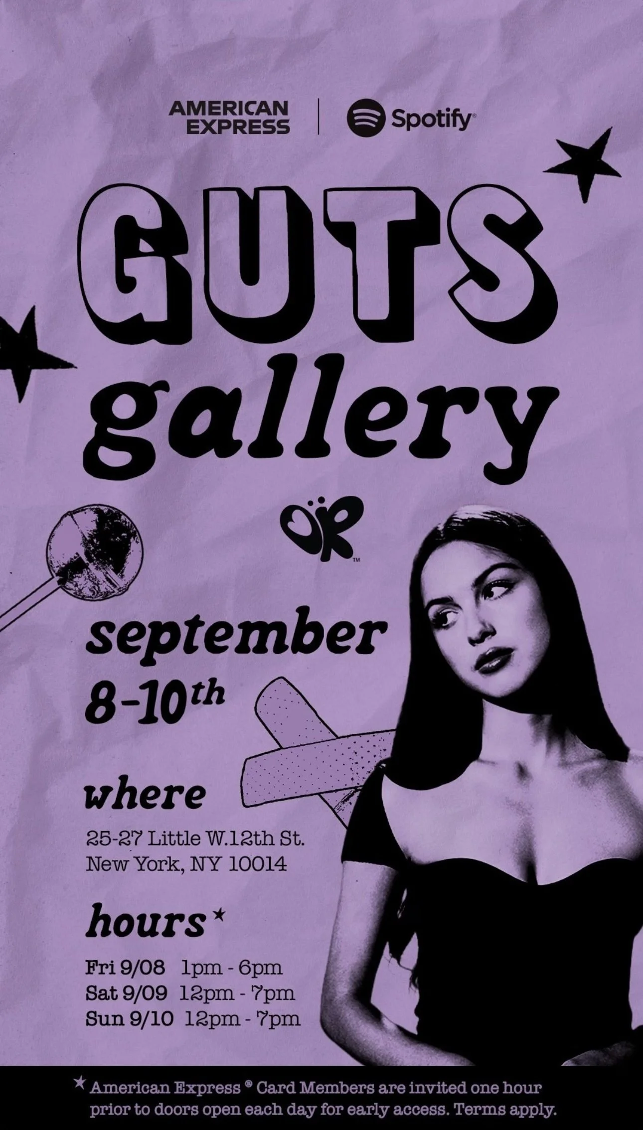 Spotify and American Express are partnering to celebrate the launch of Olivia Rodrigo’s new album GUTS. Fans will be transported into the world of GUTS with limited edition merchandise, immersive installations and more!