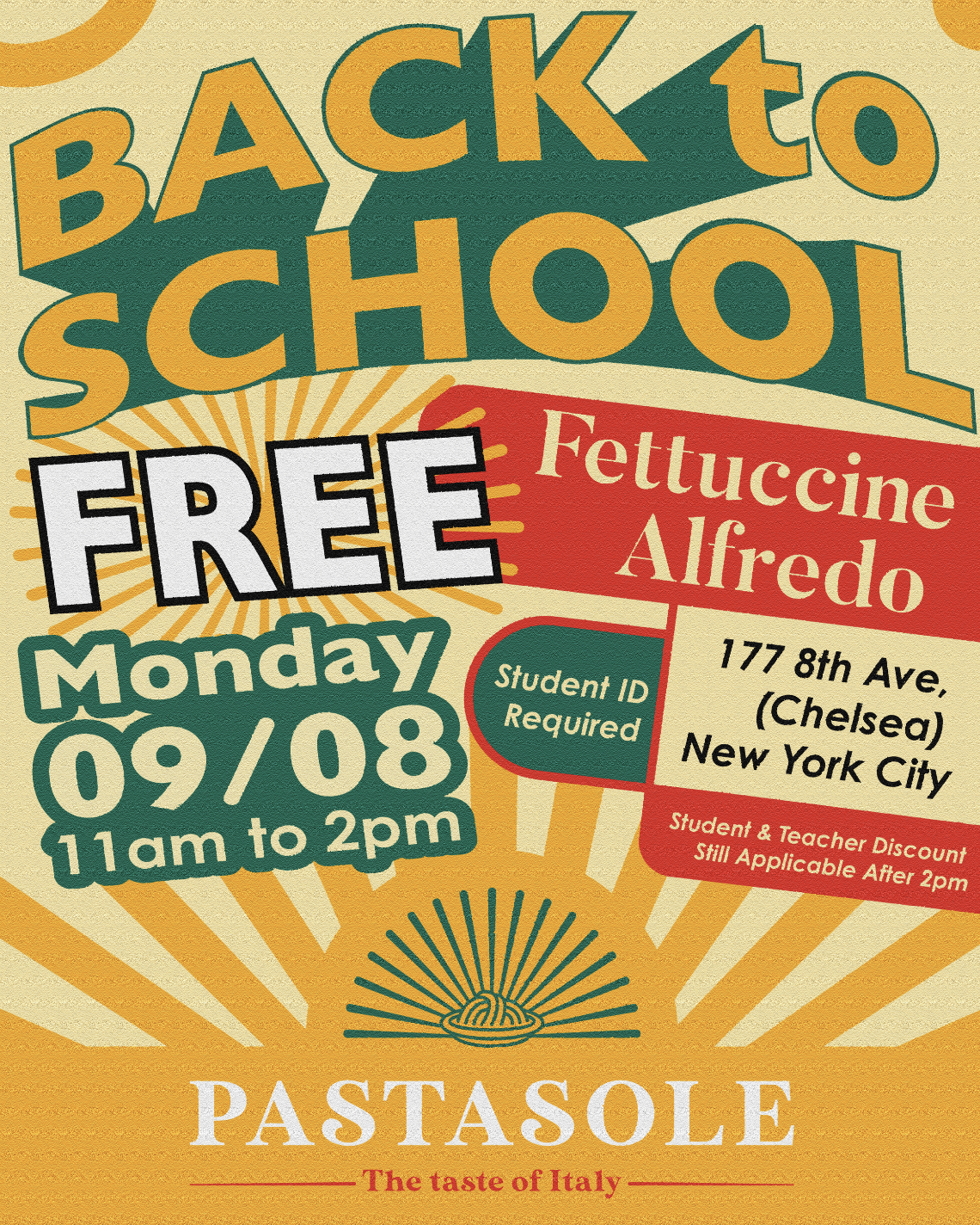 Head over to the Chelsea location from 11a-2pm. Must show Student ID! Student & teacher discount still applicable after 2pm.