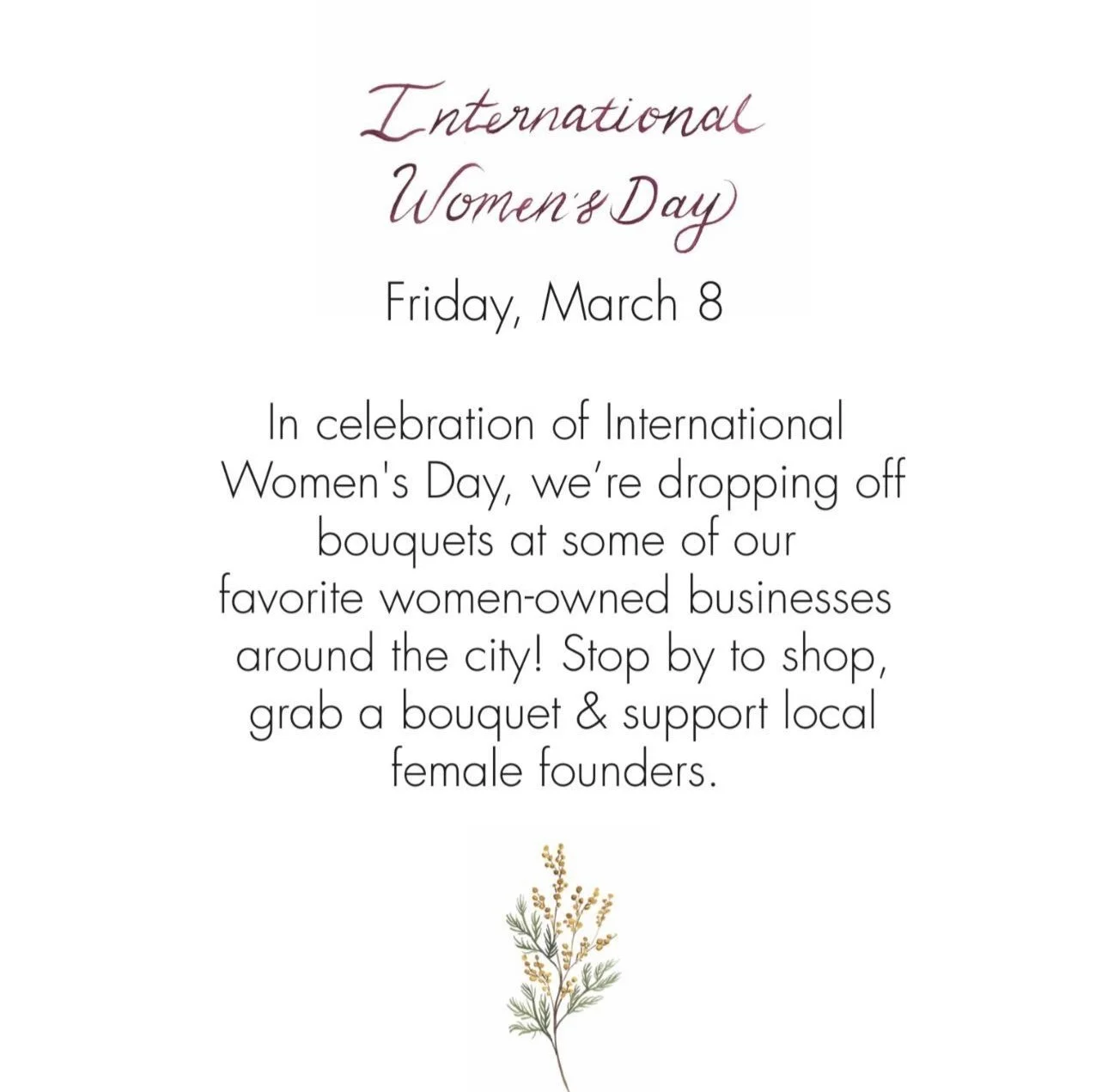 In celebration of International Women’s Day on Friday March 8, POPUPFLORIST is dropping off bouquets at some of its favorite women-owned businesses around the city. Stop by to shop, grab a bouquet & support local female founders. Update: this is now with purchase*