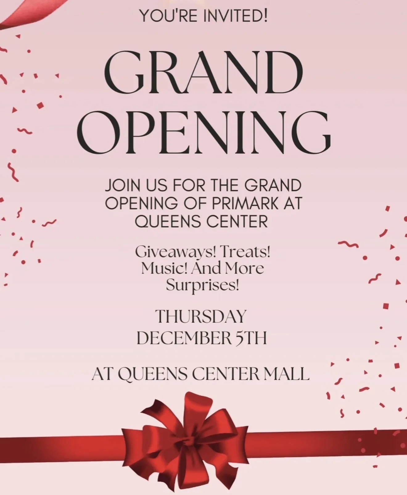 Join Queens Center for the highly anticipated opening of Primark at Queens Center at 11am, for giveaways, music, treats, and of course amazing fashion!