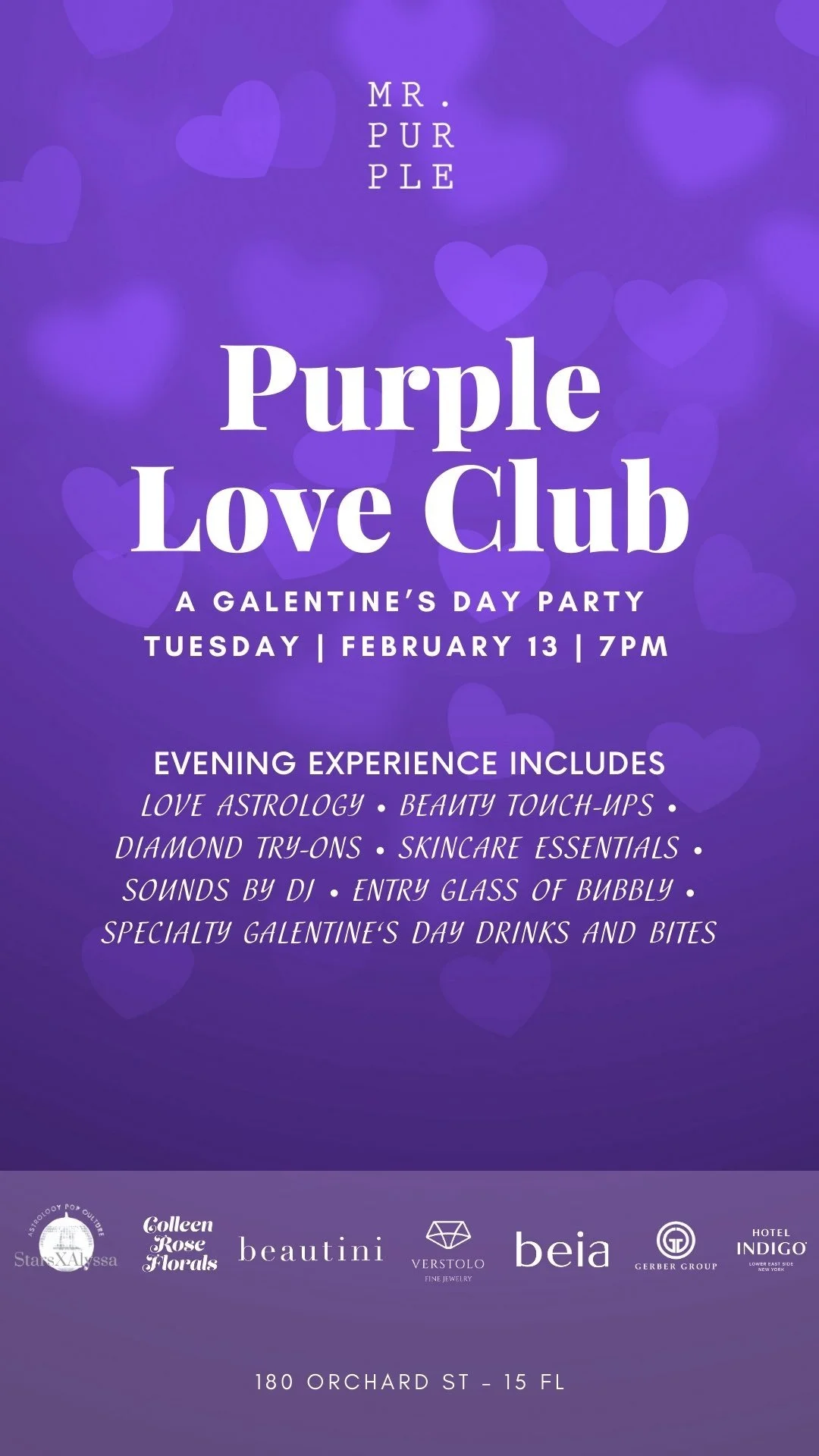 Celebrate Galentine’s Day at Mr. Purple on February 13 with a free Galentine’s Day party!