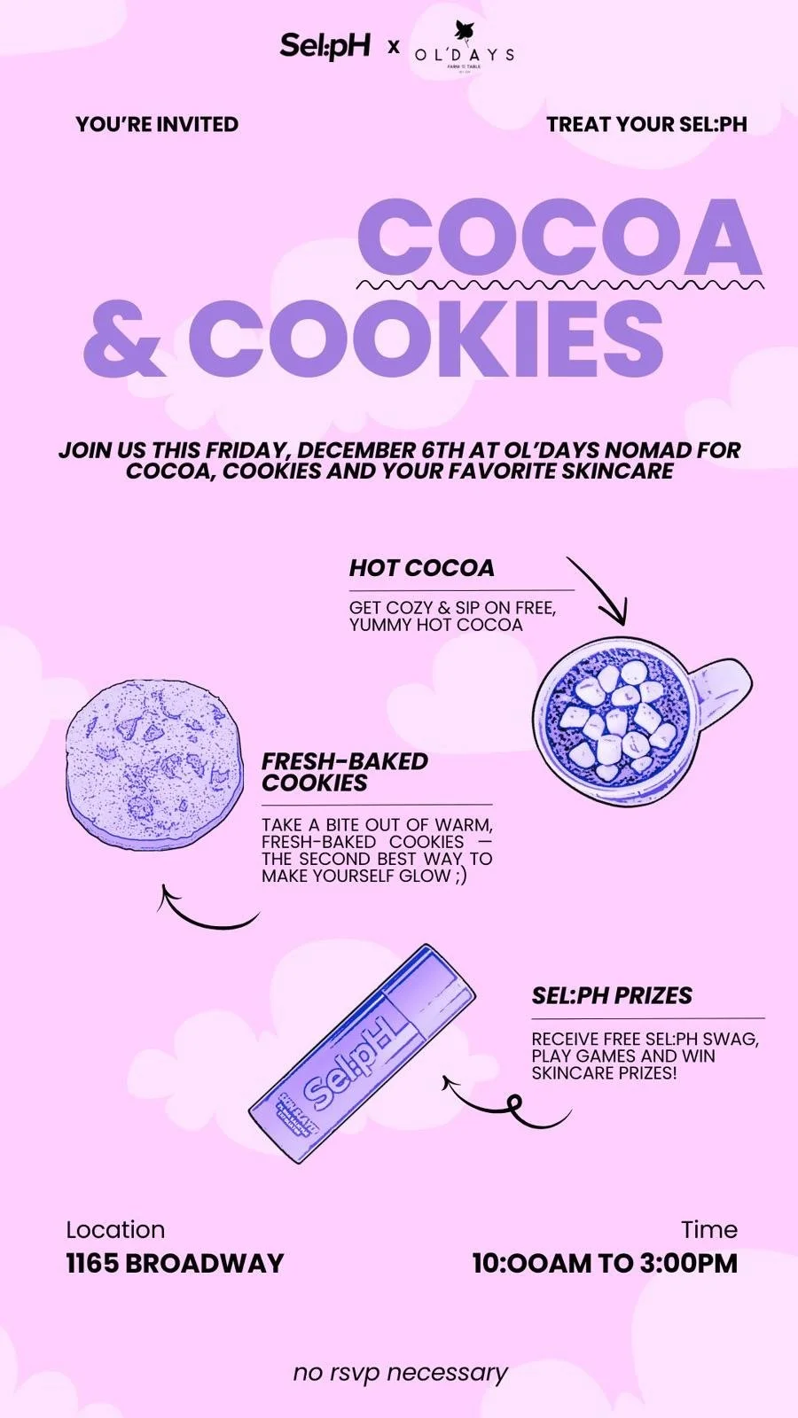 Attendees will enjoy free samples, swag, hot cocoa, and chocolate chip cookies (while supplies last).