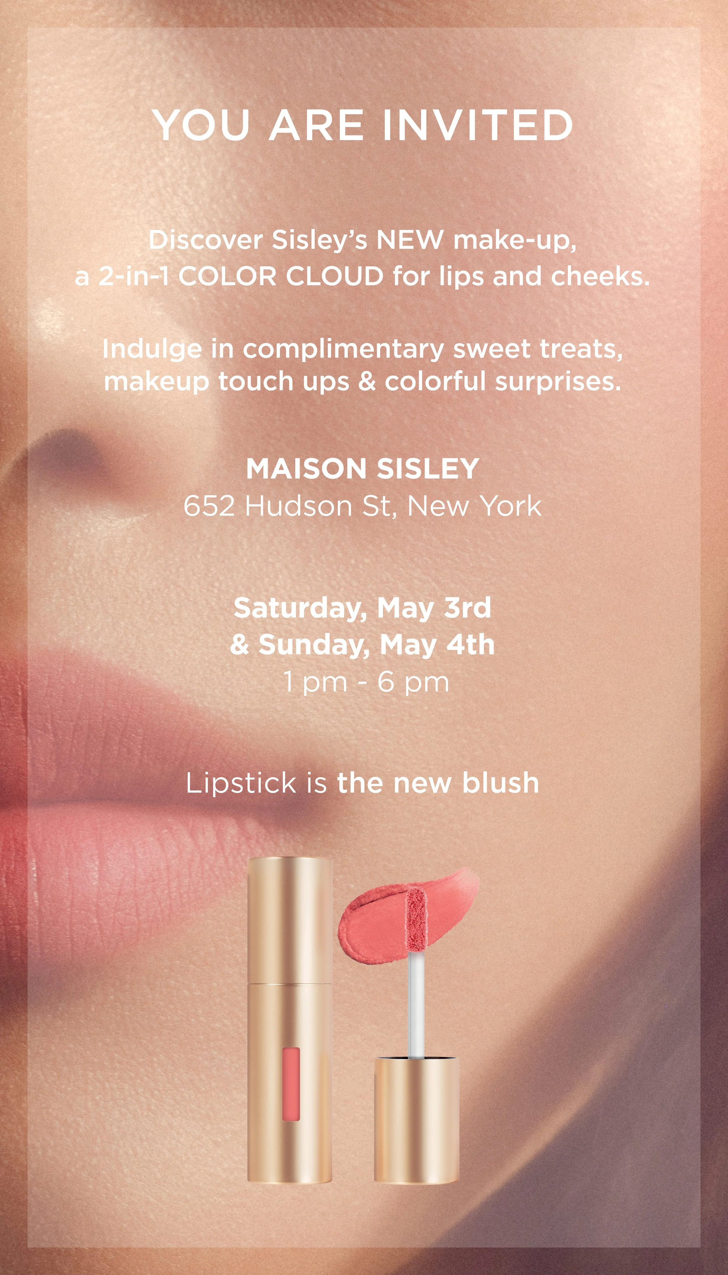 Lipstick is the new blush! Discover Sisley's NEW make-up, a 2-in-1 COLOR CLOUD for lips and cheeks.