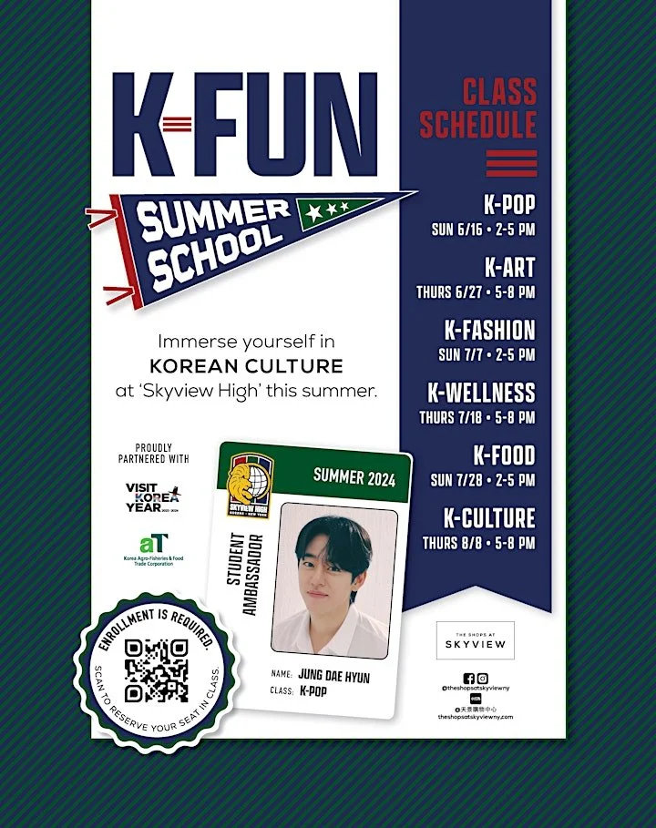 The Shops at Skyview have expanded the wildly popular annual “K-Fun” Korean cultural festival to span six weeks, with one day during each designated week dedicated to exploring the vibrant and captivating facets of Korean pop music, art, fashion, wellness, food and traditional cultural experiences!