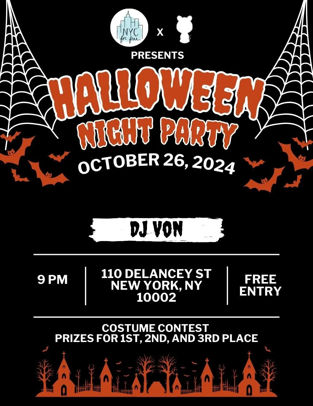 Hosted by Rebeka, of NYC for FREE, come party on halloween at one of the only no cover parties in the lower east side. We cant wait to have you come by and spend the holiday with us!