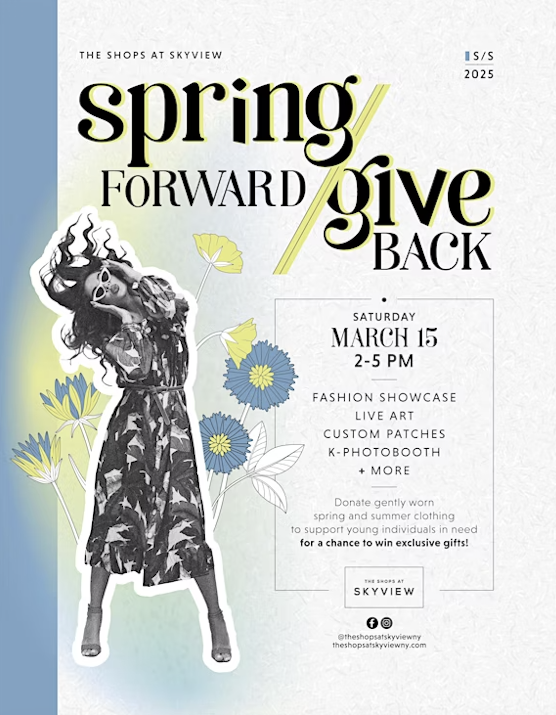Join us for Spring Forward/Give Back at The Shops at Skyview on Saturday, March 15, a celebration of fashion, art, and giving back.