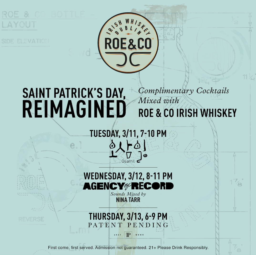No parades or clichés—just a modern Irish celebration that keeps the spirit alive in a bold new way! Mix up your typical St. Patrick’s Day celebration and join Roe & Co Irish Whiskey for a series of events across New York City, where complimentary craft cocktails meet vibrant music and unforgettable vibes. Rolling events so drop in anytime!