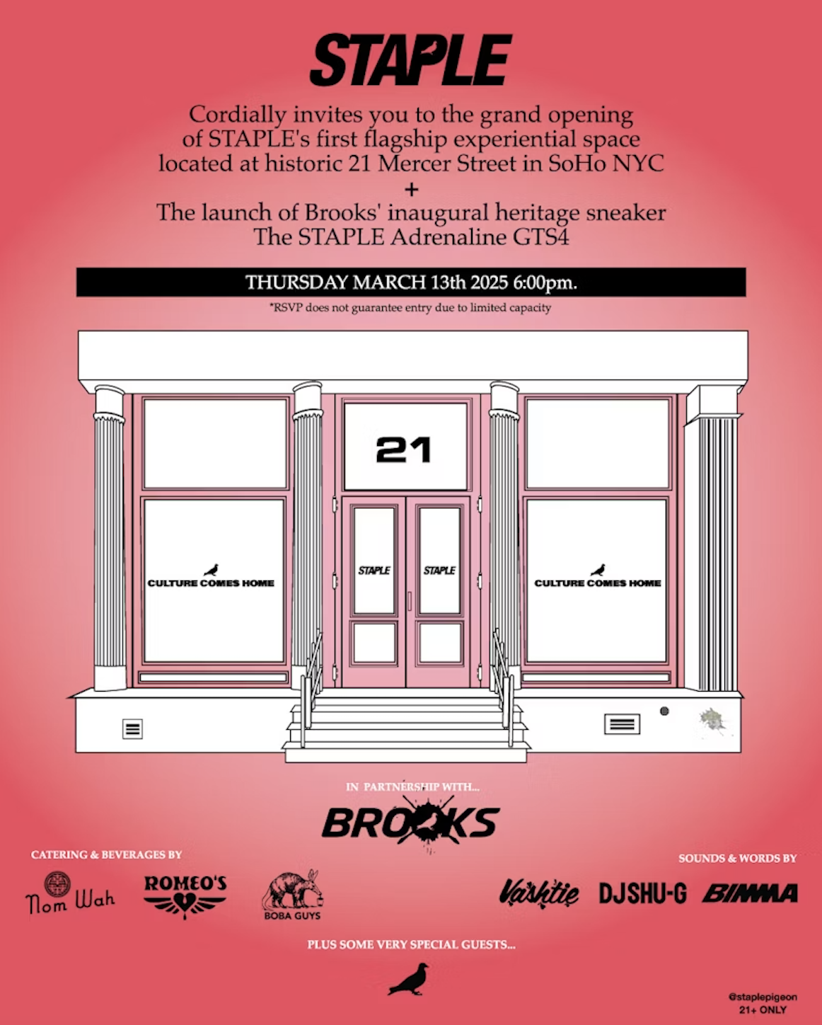You are cordially invited to the grand opening of STAPLE's first flagship experiential space located at historic 21 Mercer Street in SoHo NYC + The launch of Brooks' inaugural heritage sneaker - the STAPLE Adrenaline GTS 4.