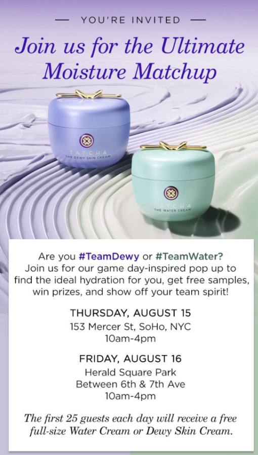 Are you #TeamDewy or #TeamWater? Find out at the Tatcha #MoistureMatchup pop-up this week in NYC!