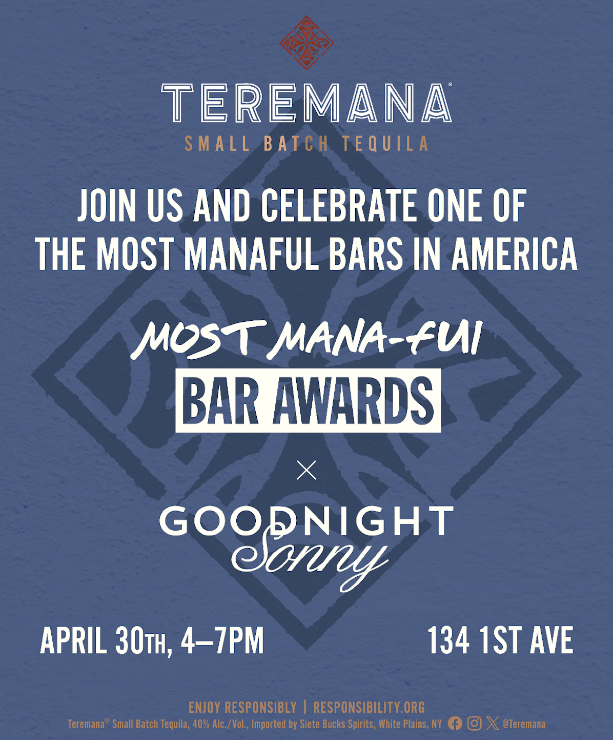 Head to Goodnight Sonny (134 1st Ave) on April 30th from 4-7pm. Enjoy complimentary Teremana cocktails and bites (21+).