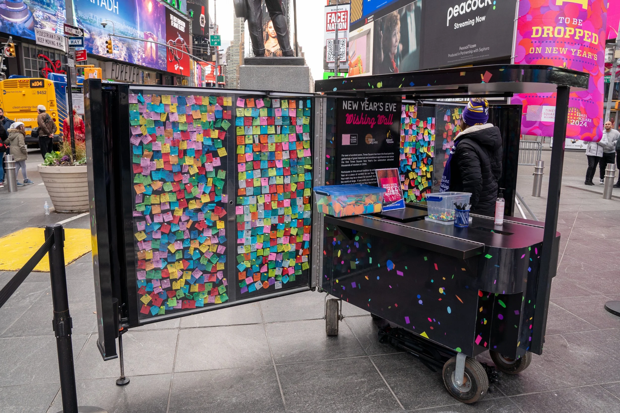 Whether it's a personal goal, a dream for the future or doing something for the very first time, these wishes are added to over a ton of confetti that floats down at midnight onto the revelers gathered in Times Square in celebration of the new year. Be a part of this most magical night by making your wish in person through our mobile Wishing Wall on the plazas or by sharing your New Year's wish with us below or on Twitter and Instagram using #ConfettiWish. We will add it to the thousands of others released above Times Square at midnight on New Year's Eve for all the world to see!