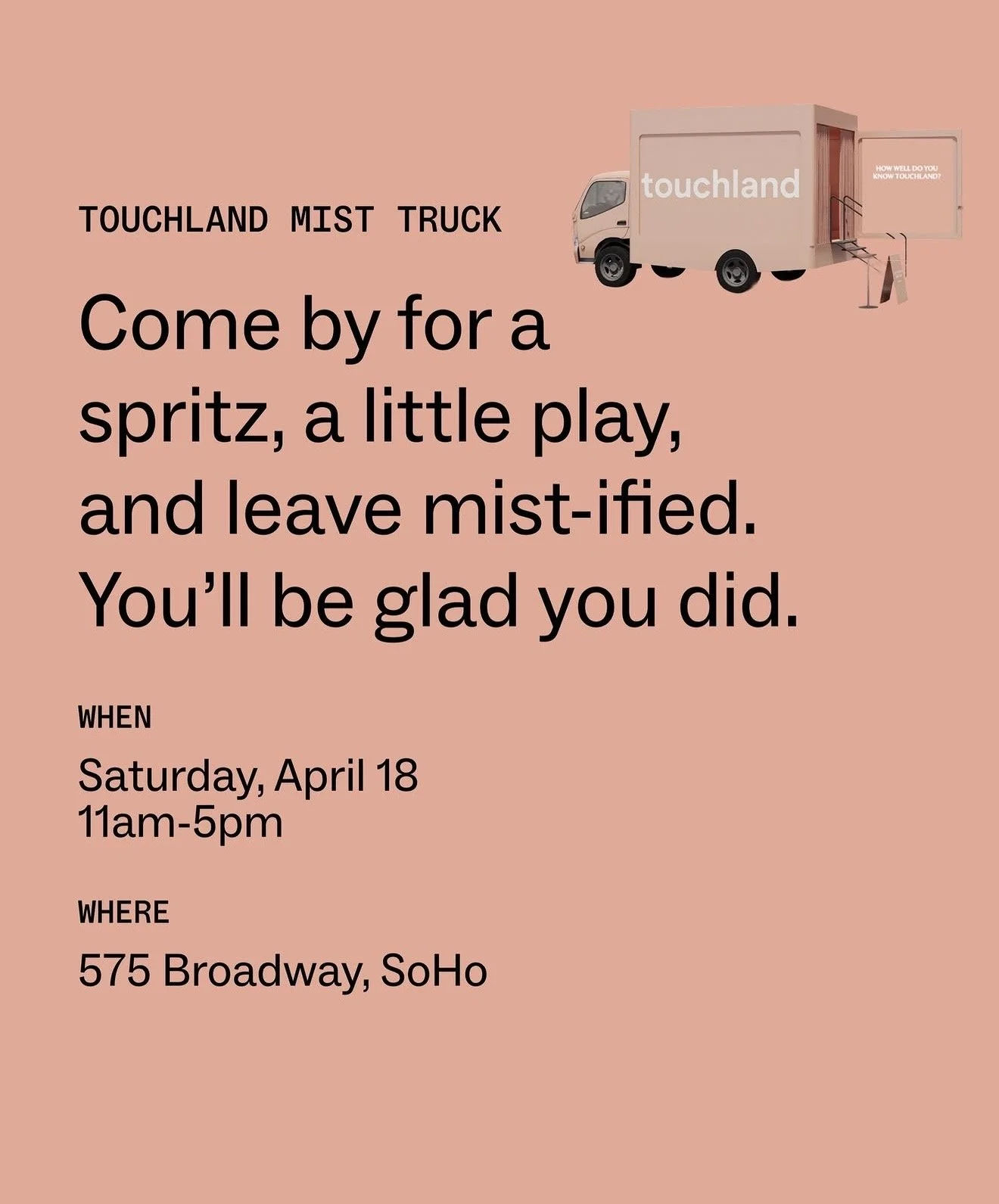 This Saturday, April 18, the Touchland Mist Truck is coming to NYC.