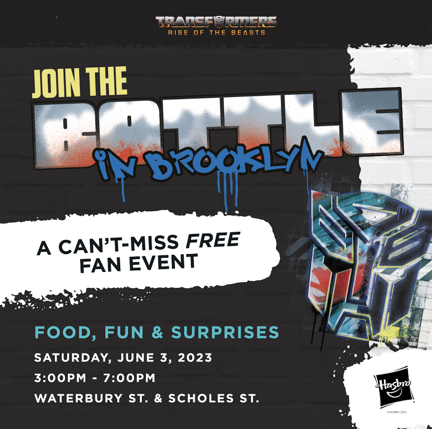 Free to the public, the “Transformers: Battle in Brooklyn” event will take place on Saturday, June 3, 2023, from 3 – 7 p.m. in Brooklyn, NY, at the intersection of Waterbury Street & Scholes Street. Transformers: Rise of the Beasts will be released globally by Paramount Pictures exclusively in theatres on June 9.