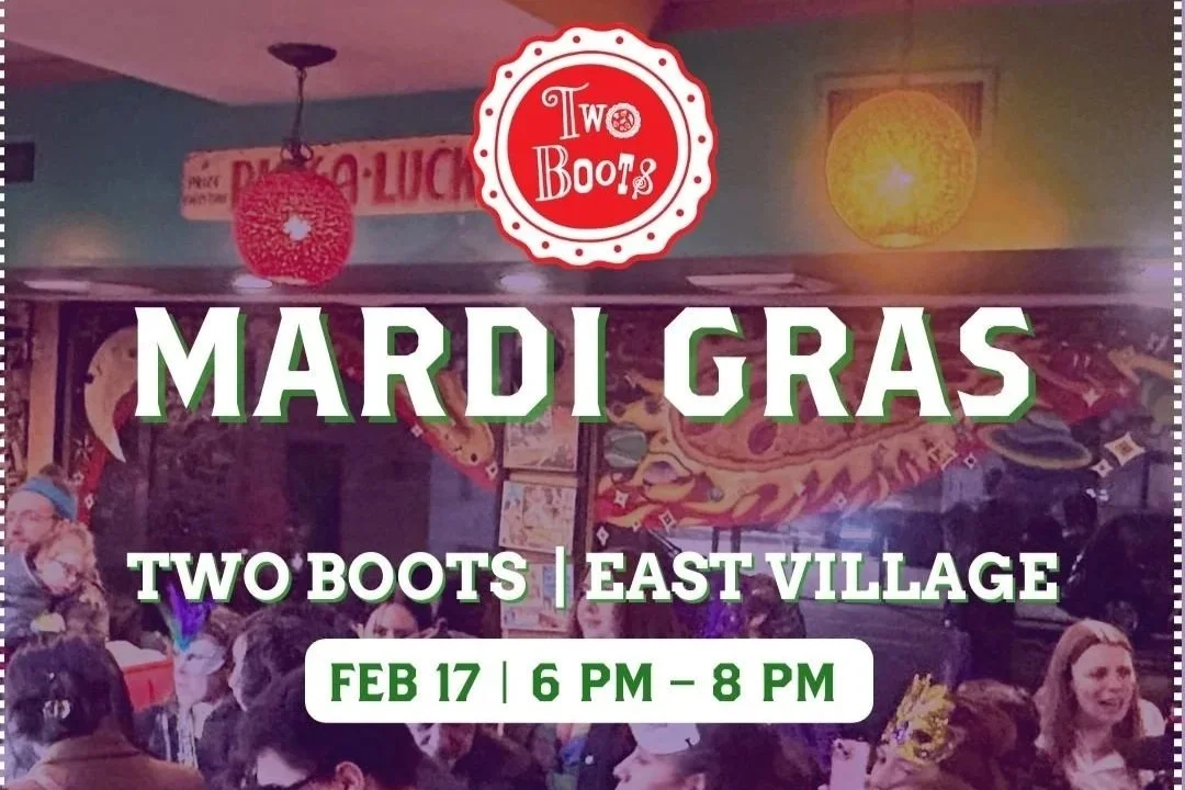 Brace yourself for a bold brass-fueled FAT TUESDAY with Two Bootsโ signature upbeat chaos. Think a funky mix of jazz & punk grooves, free beads, free Swamp Witch tasting (THE GATOR PIE IS BACK! ๐), Cajun pies from our Mardi Gras menu, free slices of King Cake โ find the baby and win a $100 TB gift cert!!! โ plus parade up Ave A. ๐ท