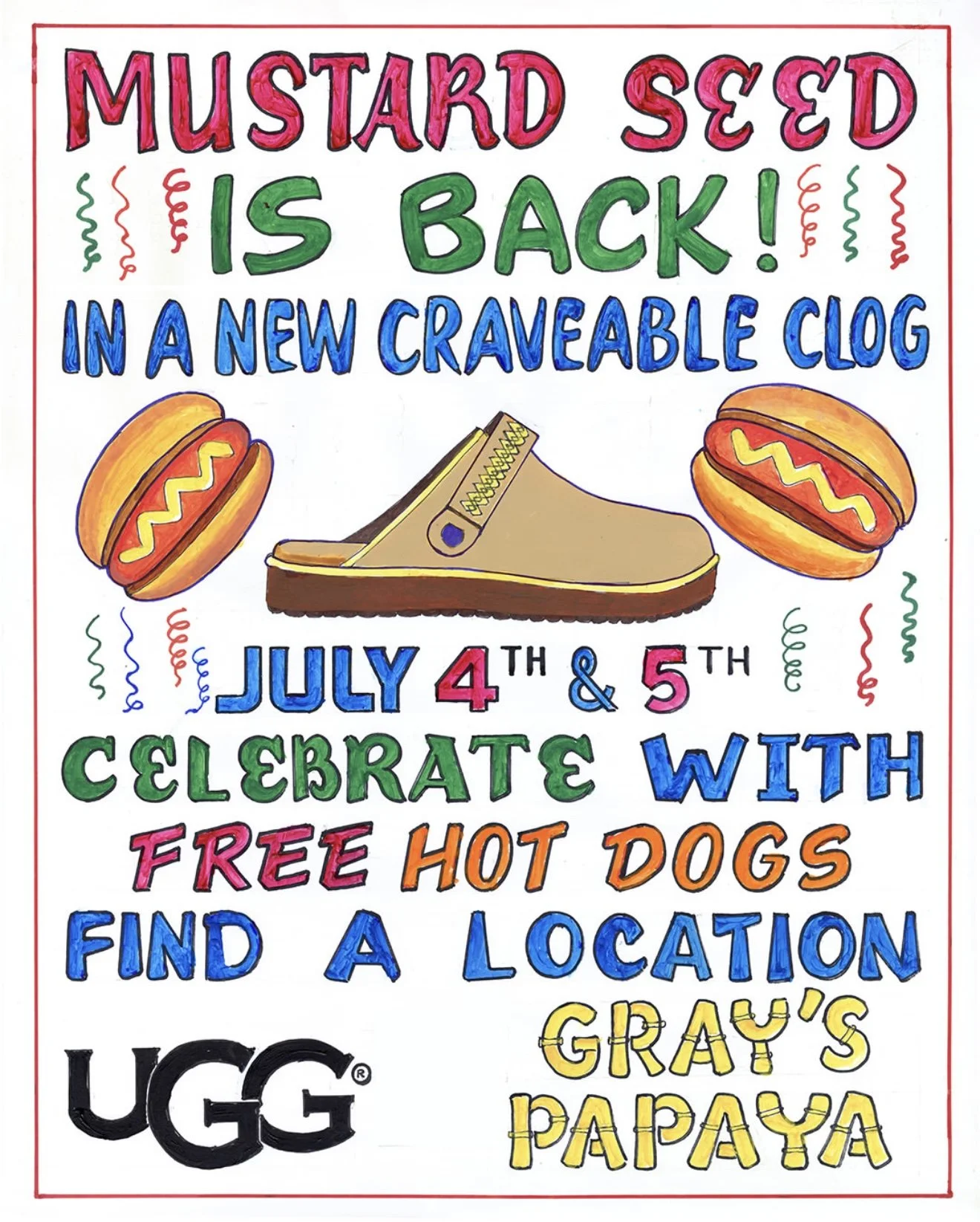 The Goldenstar and Goldencoast UGGbraid Clogs in Mustard Seed are almost here—and UGG is celebrating with hot dogs (of course). Find them at UGG Gray's Papaya events for a free hot dog when you sign up for UGG Rewards, and shop the drop IRL at the UGG Soho store.