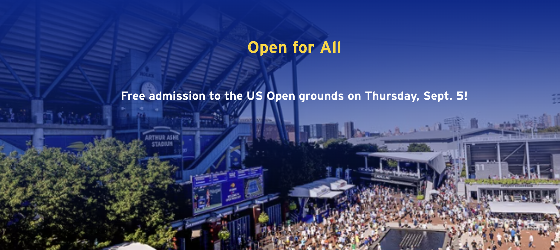 Free admission to the US Open grounds on Thursday, Sept. 5!