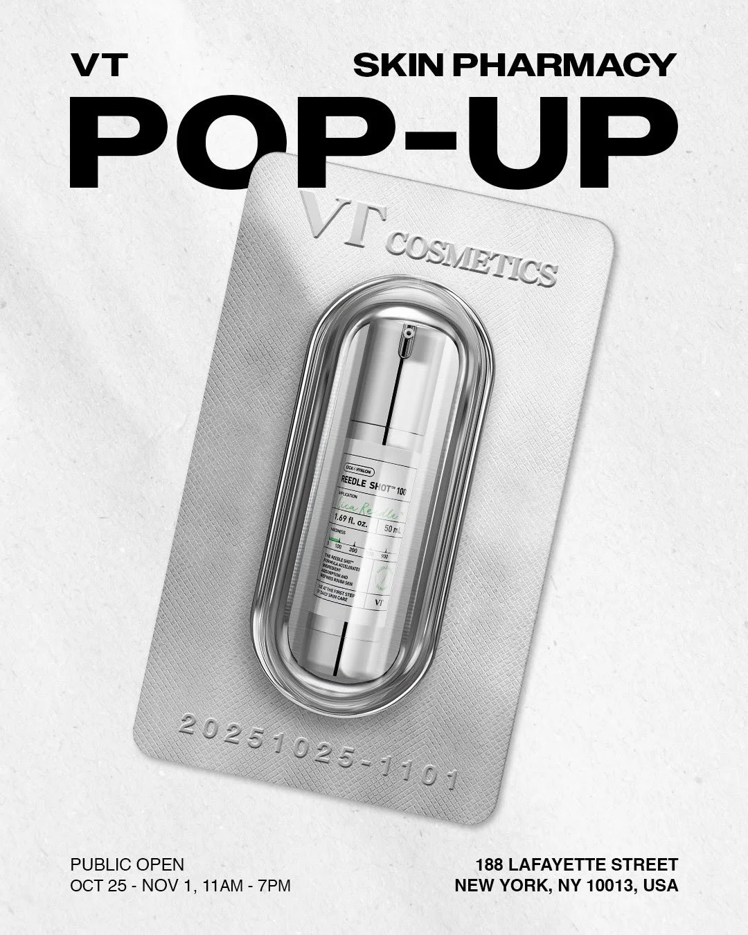 You are invited to the VT Skin Pharmacy POP-UP in NYC from Oct. 25 - Nov. 1 11AM - 7P