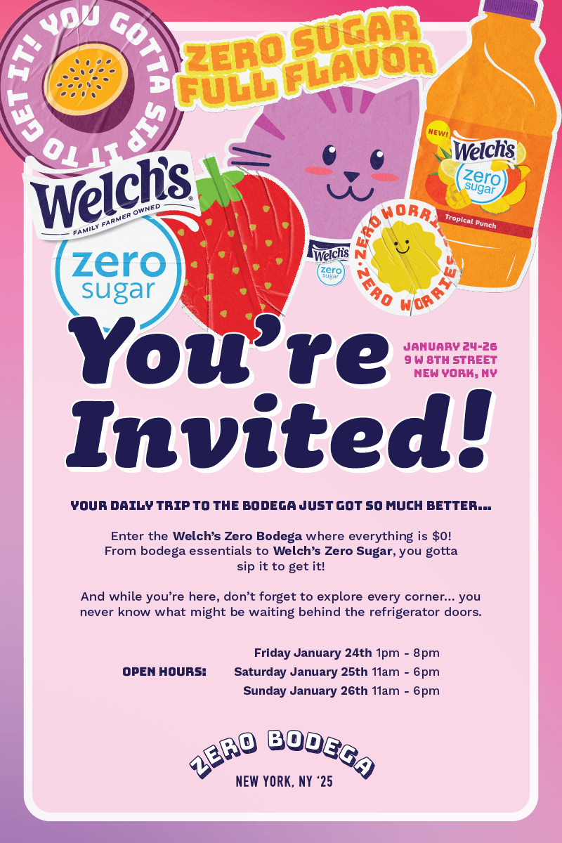 Your daily trip to the bodega just got so much better! Enter the Welch's Zero Bodega where everything is $0!