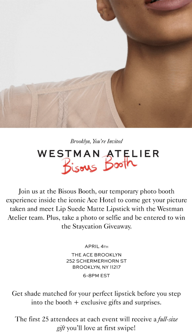 Westman Atelier is introducing a temporary photo booth residency in three iconic Ace Hotel locations in celebration of Lip Suede Matte Lipstick! Join us at a Westman Atelier Bisous Booth to meet your new favorite lipstick. Swatch & get shade matched before stepping to the photo booth