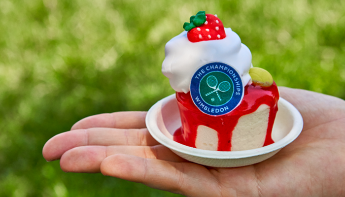 The 1.5oz Junior’s Original flavor mini-cheesecakes will be topped with homemade strawberry sauce, whipped cream, and edible Wimbledon-themed motifs.
