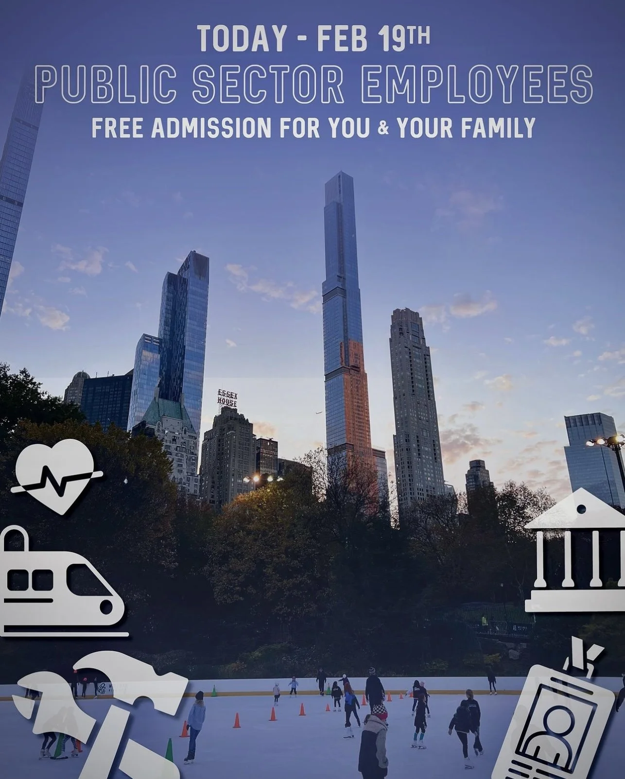 Wollman Rink in Central Park hosts Community Days with free admission throughout the year as part of the Wollman Rink Access Program.
