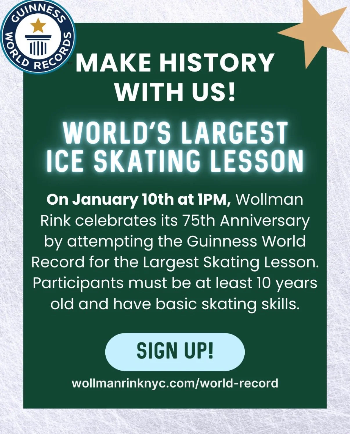 On January 10th at 1pm, Wollman Rink celebrates it 75th Anniversary by attempting the Guinness World Record for the Largest Skating Lesson.