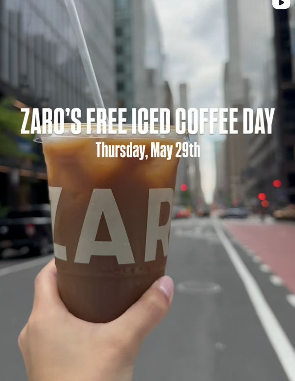 Spring has finally sprung in the city, and what better way to say thanks (and hello) than with a FREE ICED COFFEE on Zaro’s?